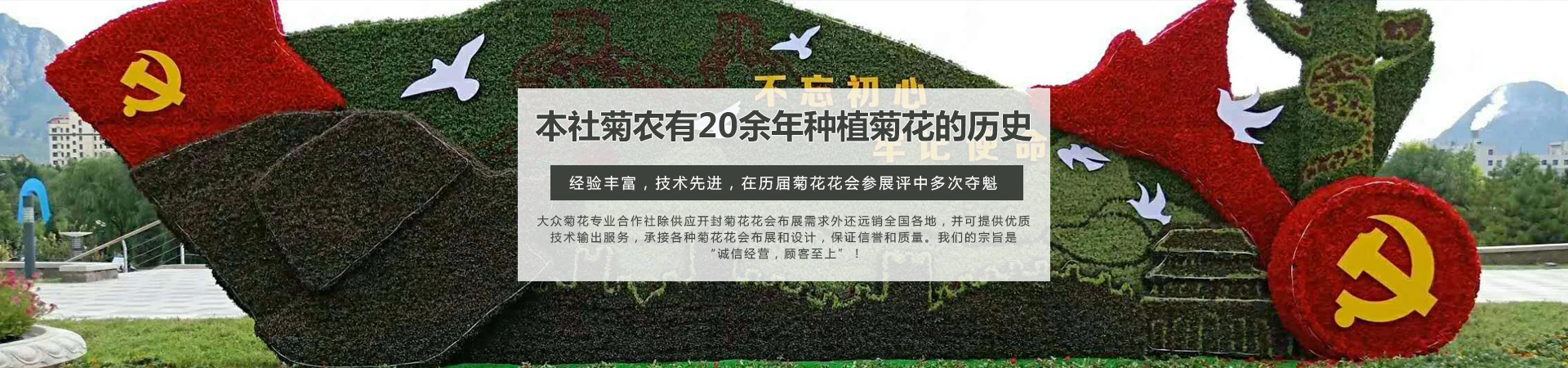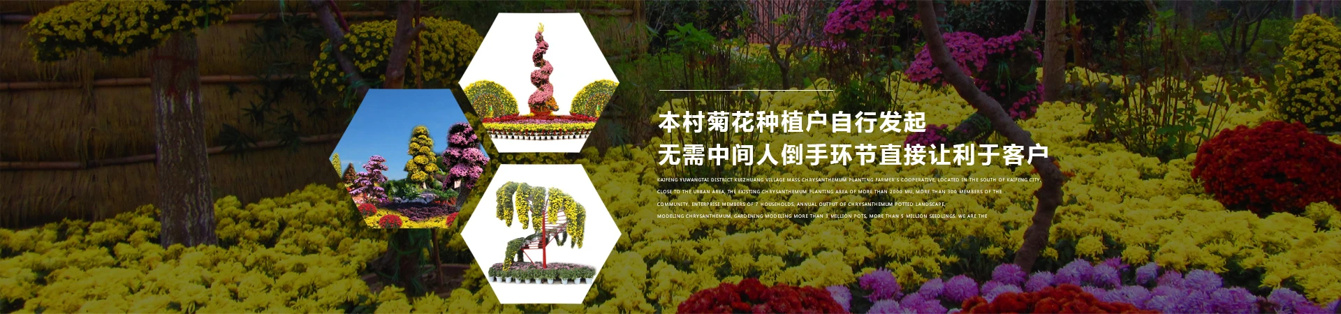 开封市禹王台区魁庄村大众菊花种植农民专业合作社,地处开封市城南,紧邻市区,现有菊花种植面积2000多亩,社员300余户,企业成员7户,年产菊花盆景、造型菊花、园艺造型三百万余盆,种苗五百万余株。我们是本村菊花种植户自行发起,无需中间人倒手环节直接让利于客户。我们菊农有20余年种植菊花的历史,经验丰富,技术先进,在历届菊花花会参展评中多次夺魁。 开封大众菊花除供应开封菊花花会布展需求外还远销全国各地,并可***优质技术输出服务,承接各种菊花花会布展和设计,保证信誉和质量。
